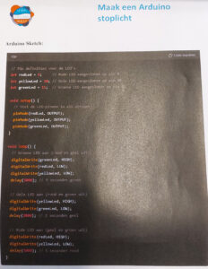 Voor ittl heb ik zelf een stoplicht gemaakt met arduino en een handleiding, ik vond het zelf best wel leuk maar jammer genoeg moest ik het alleen doen. het coderen was makkelijk omdat we een blad krijgen waar de code al op staat die we gewoon kunnen overschrijven in de website die we gebruiken. als je een draad van de arduino in je laptop doet, dan geeft het stop licht licht.